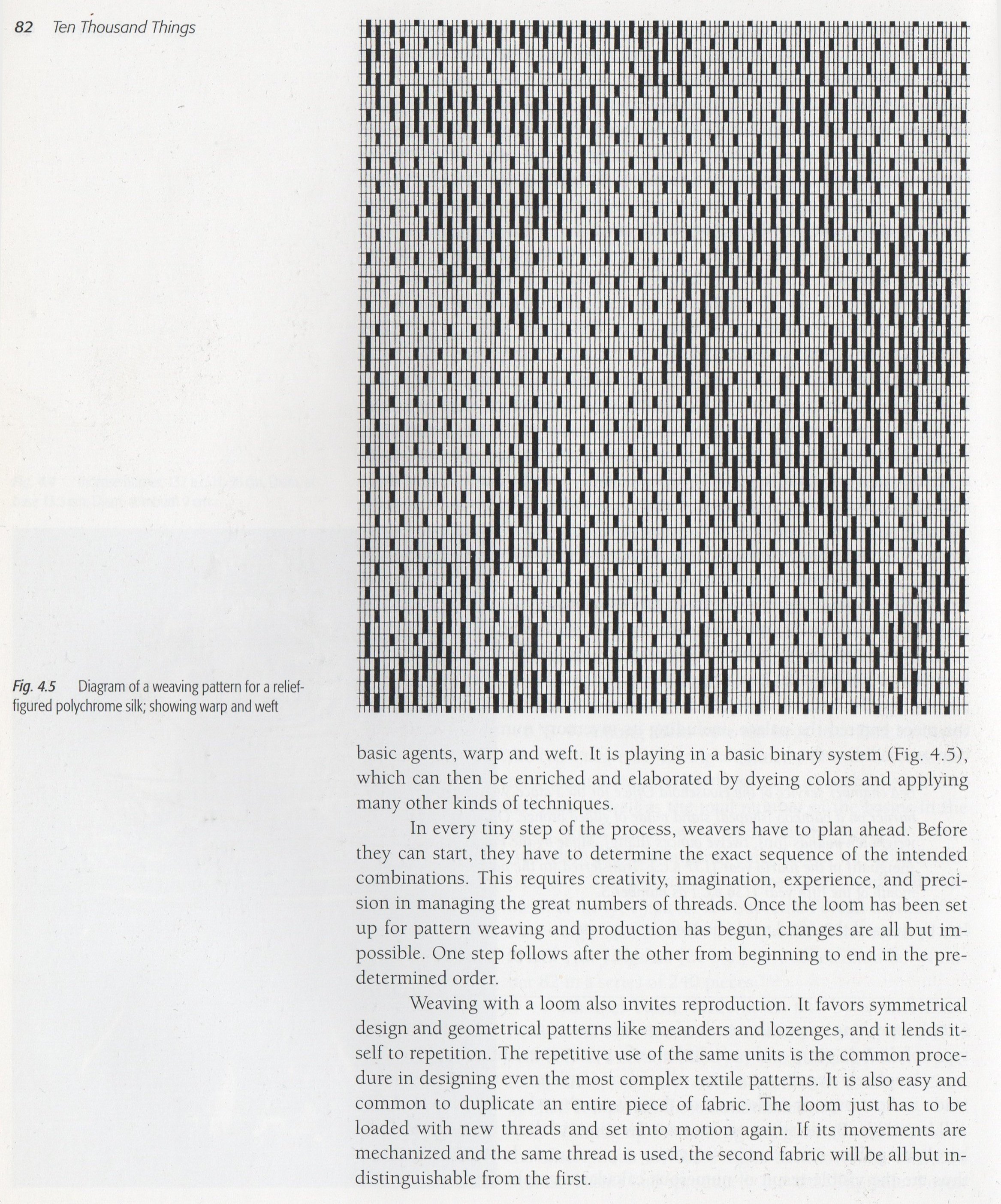 Upon hearing that the design team at WET wanted to propose a grid of 10,000 nozzles, I immediately suggested using a “warp and weft” pattern for the tiles from one of my favorite books: 10,000 Things by art historian Lothar Ledderose. I am fascinated by Chinese art and art history. Studying this field has inspired a life-long interest in the relationship between module, mass production and artistic expression. Jules generated the tile pattern above right and below from the reference image I provided.