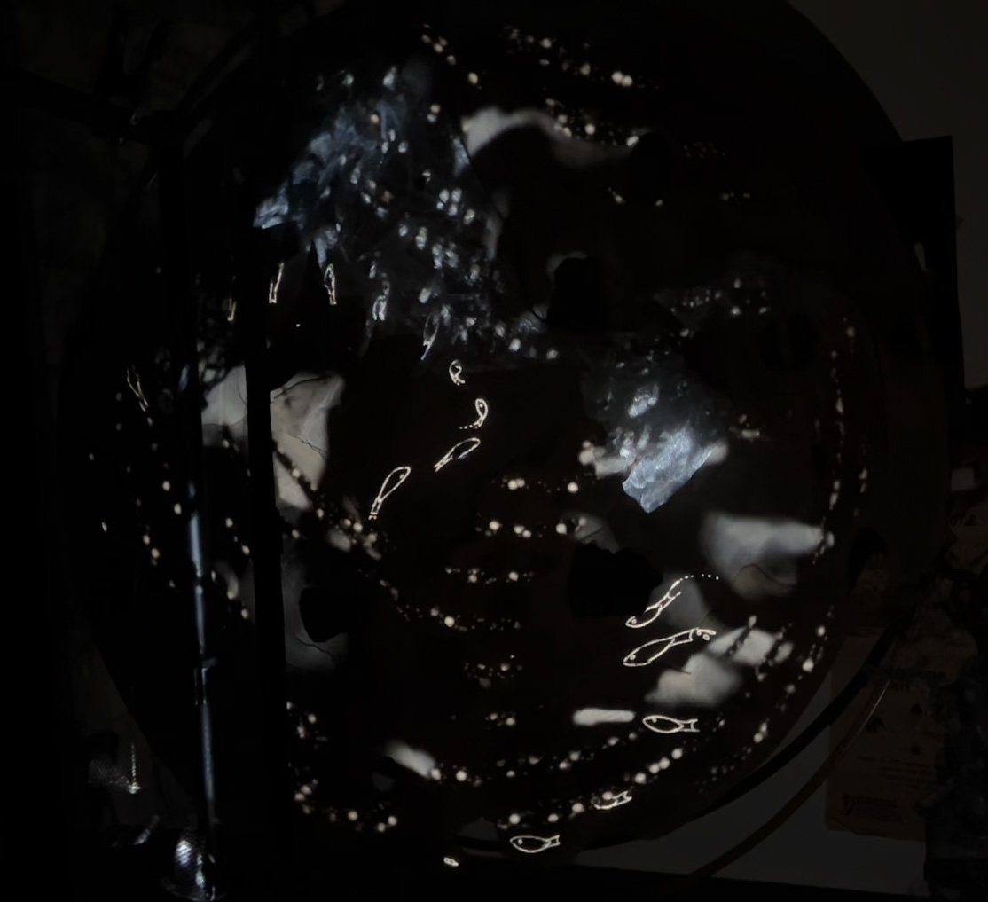 This piece is the focal point of the ecosystem. It is a 5-foot diameter abstract geometry that receives projection from two sources. By turning this sculpture, the visitor changes every piece in the show.